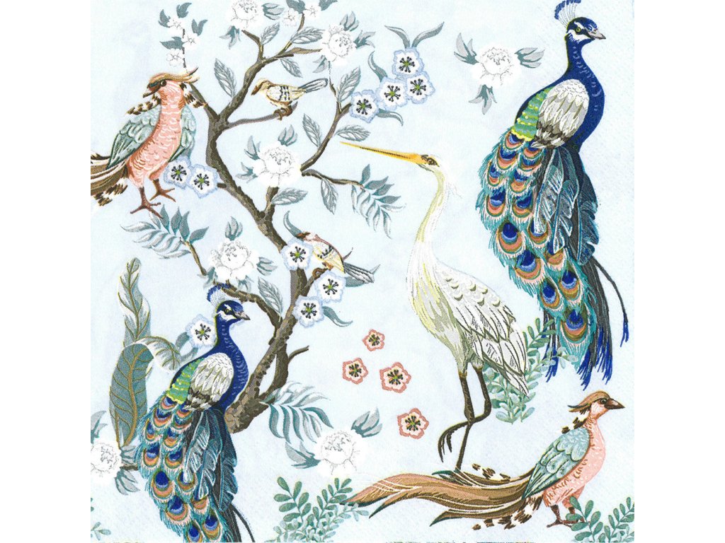 Ubrousky DAISY L (20ks) Peacocks and Heron in Garden on Blue