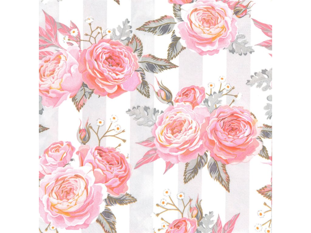 Ubrousky DAISY L (20ks) Pink Roses on Grey Stripes