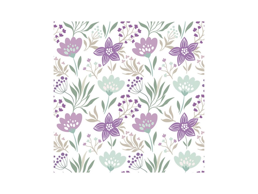Ubrousky DAISY L (20ks) Violet and Mint Flowers Wallpaper