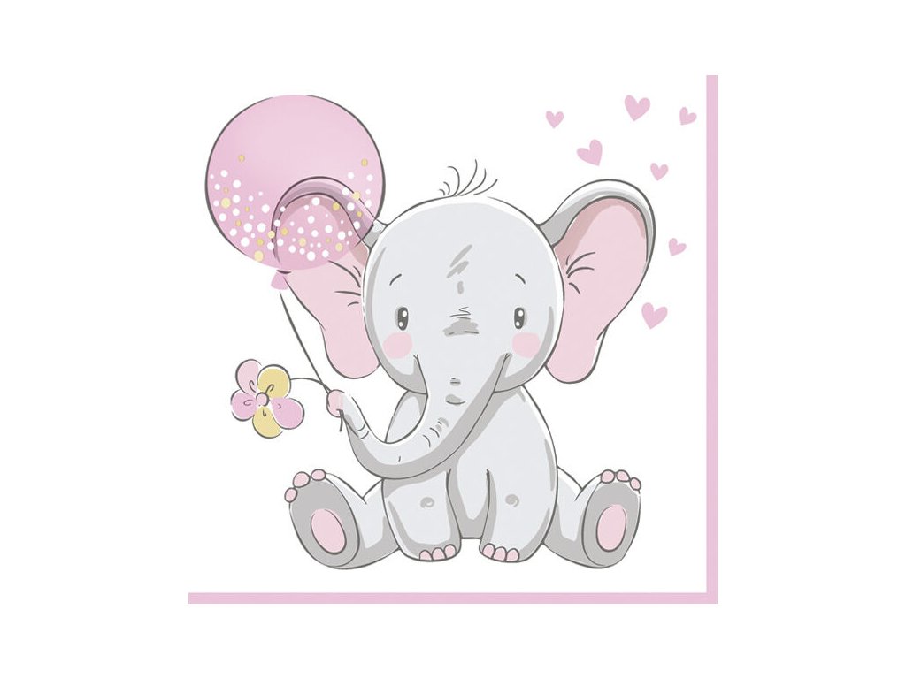 Ubrousky MAKI L (20ks) Baby Elephant with Pink Balloon