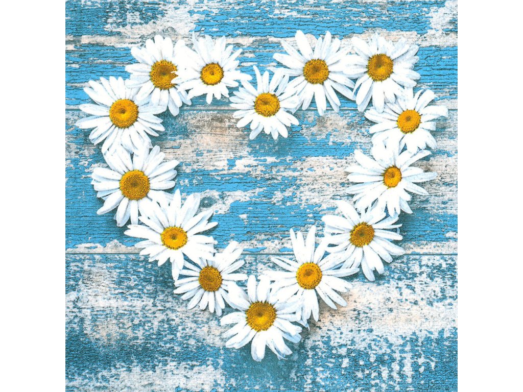 Ubrousky MAKI L (20ks) Daisy Hearts on Old Wooden Background