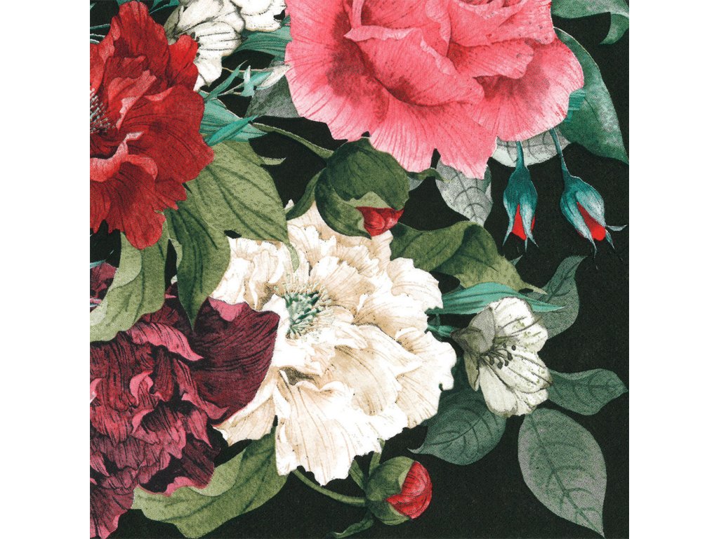 Ubrousky MAKI L (20ks) Painted Baroque Bouquet on Black