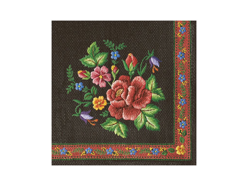 Ubrousky MAKI L (20ks) Roses Mountain Embroidery Folk on Black
