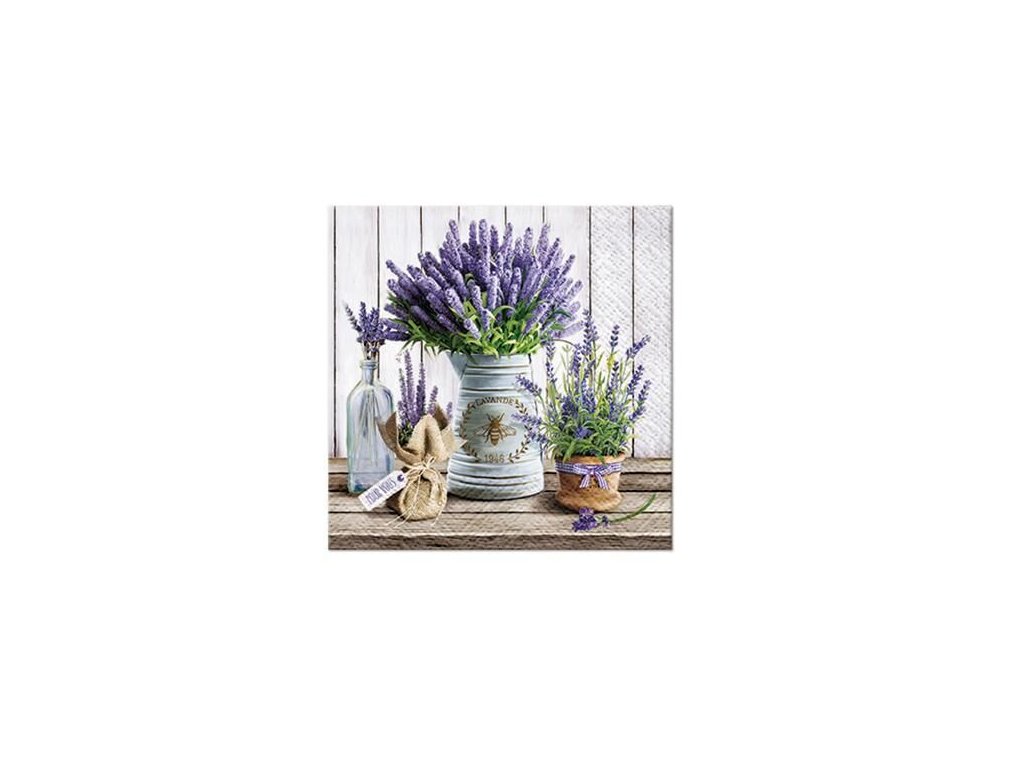 Papírové ubrousky Paw: Lavender in Bucket, 20 ubrousků, třívrstvé, 25x25cm. Provedení: CocktailDoplňkové parametry