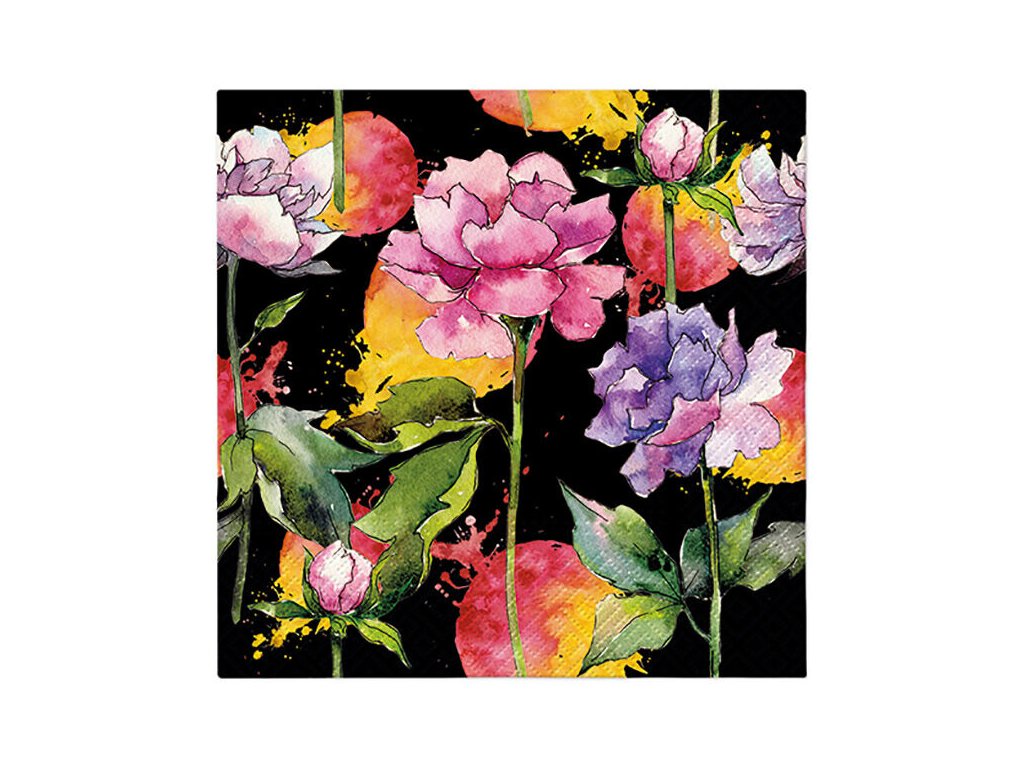 Ubrousky PAW Dekor L (20ks) Nora Flower black