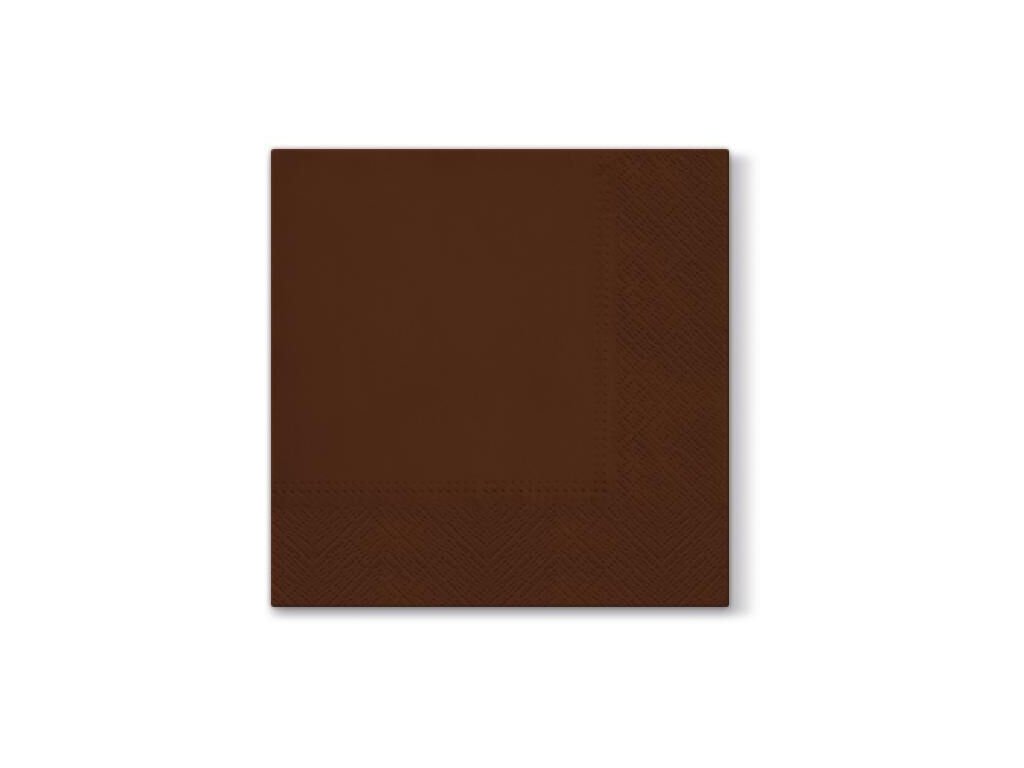 Jednobarevné papírové ubrousky Paw: Čokoládový, 20 ubrousků, třívrstvé, 33x33cm. Provedení: LunchDoplňkové parametry