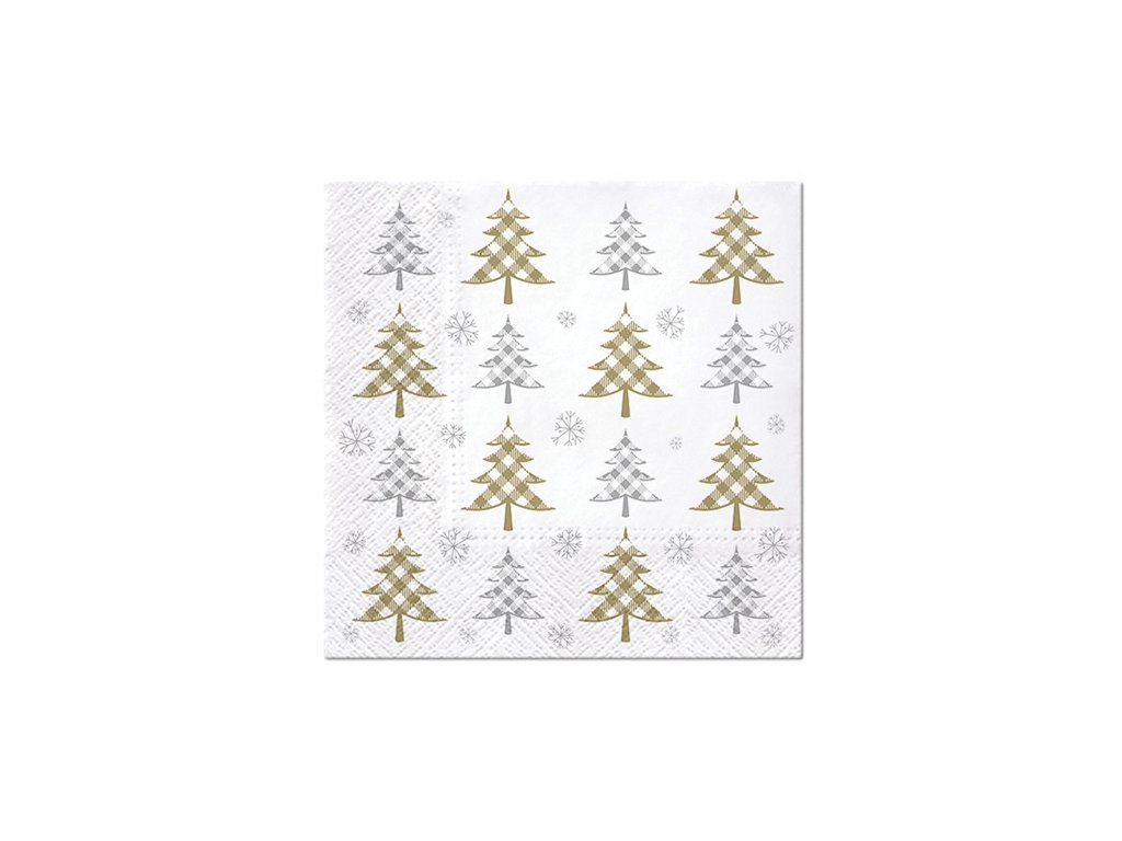 Ubrousky TaT 33x33cm Christmas Tree Check (gold and silver)