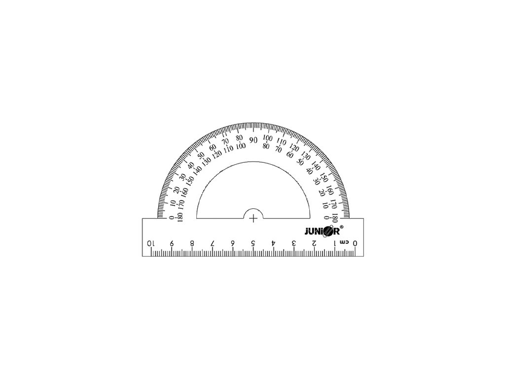 Úhloměr z průsvitného plastu, modré barvy, velikost 10cm. Baleno v plastovém obalu. Kvalitní, cenově dostupný výrobek, který firma JUNIOR nabízí pod vlastní značkou.Doplňkové parametry