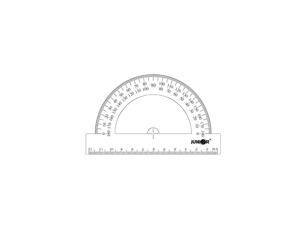 Úhloměr z průsvitného plastu, velikost 12cm. Baleno v plastovém obalu. Kvalitní, cenově dostupný výrobek, který firma JUNIOR nabízí pod vlastní značkou.Doplňkové parametry