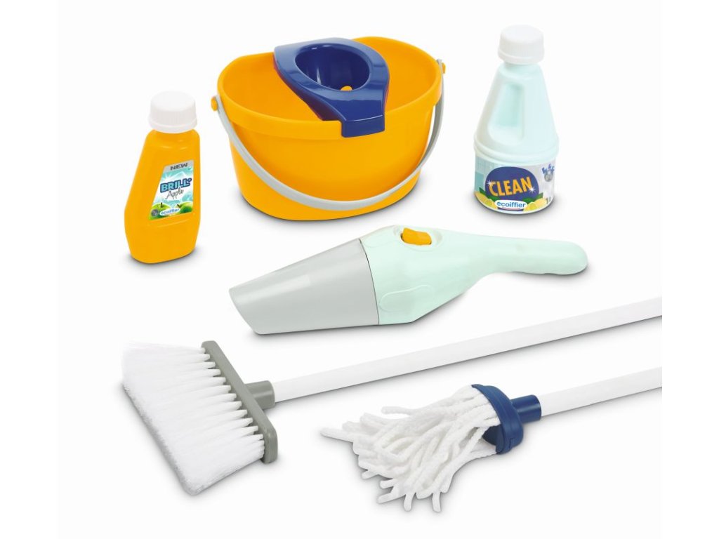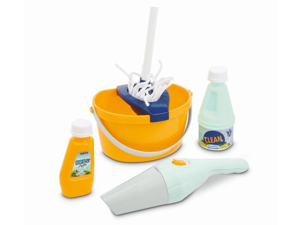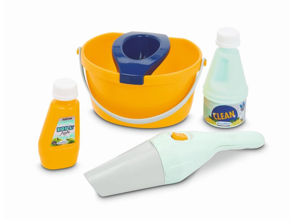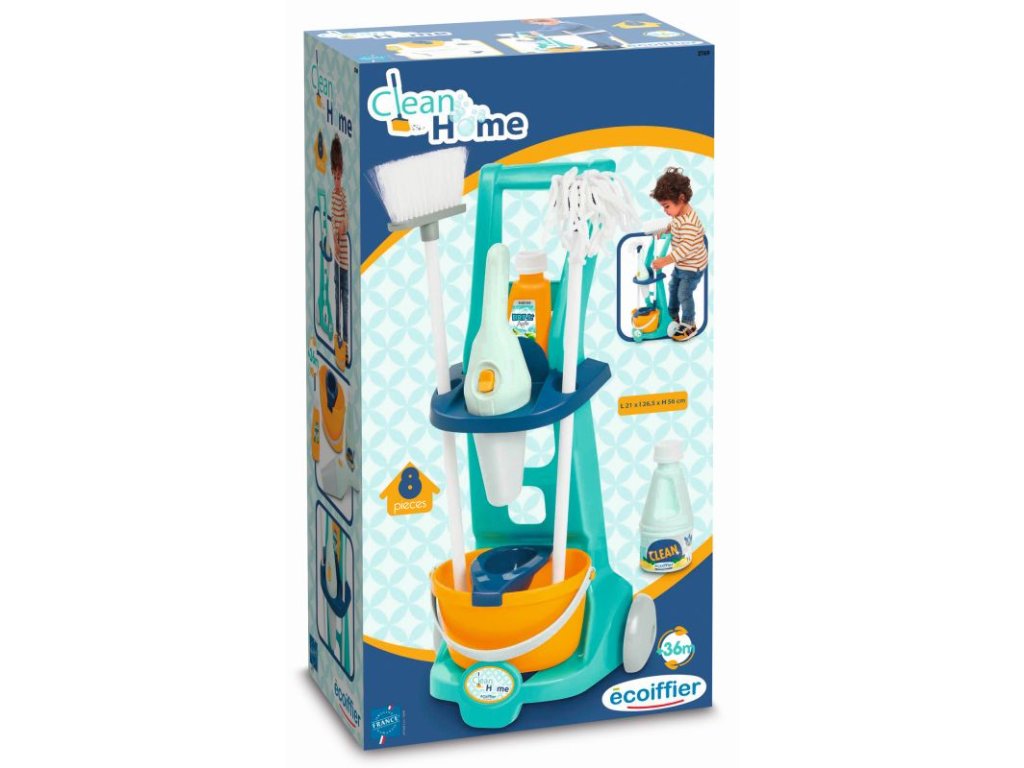 Vozík obsahuje veškeré potřebné náčiní: kbelík na úklid, mop, smeták, úklidové potřeby a ruční vysavač. Vozík pro domácnost je obzvláště lehký a ovladatelný, a proto jej lze vzít kamkoli. Tento úklidový vozík bohatý na detaily a bez ostrých hran je vhodný již pro děti od 3 let. Rozměry produktu (DxŠxV): 21 x 26,5 x 56 cm.Doplňkové parametry