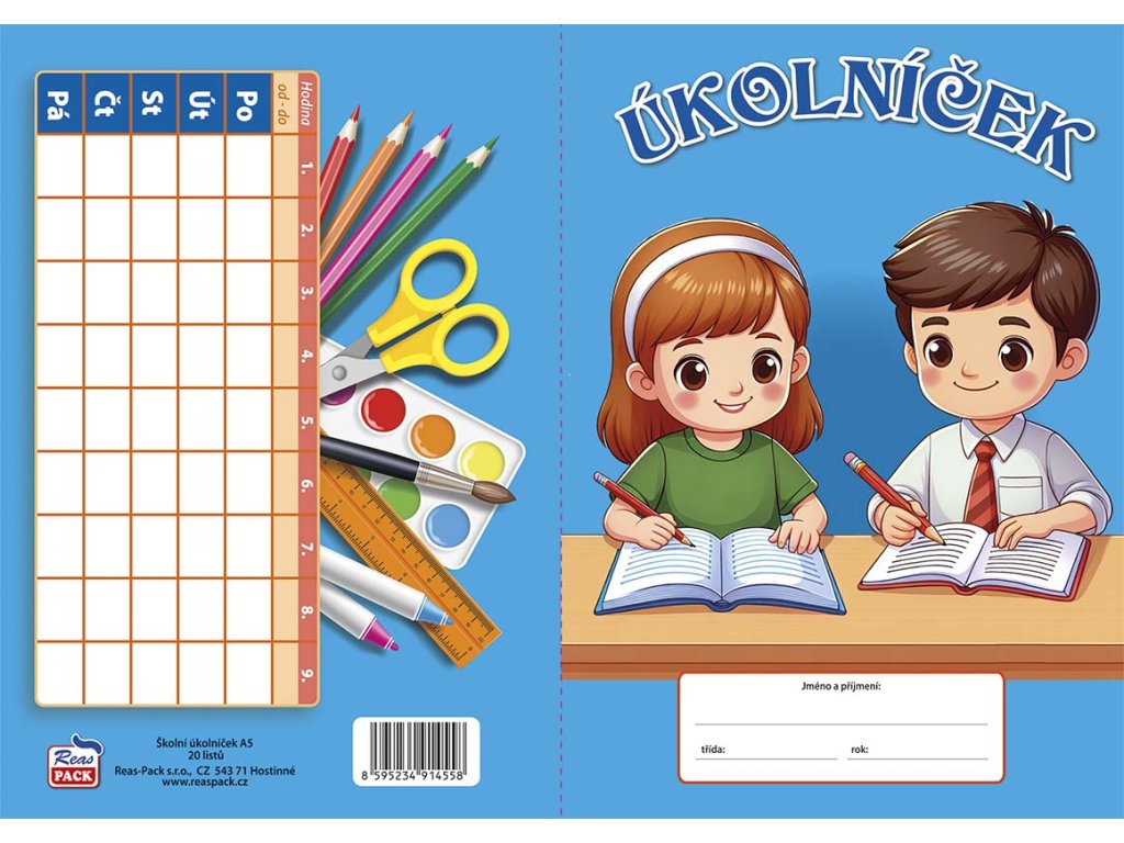 Popis produktu ˇUkolníček 524 formátu A5 20 listů Vyrobený z kvalitního bezdřevého papíru 70g/m2 Obchodní informace Výrobce: Reas-Pack s.r.o.Doplňkové parametry