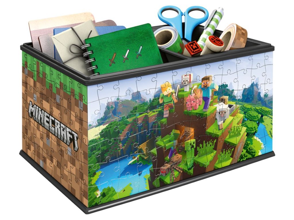 Prostě úžasné! 216 plastových dílků puzzle slouží k vytvoření pevné úložné krabice s motivem z kostičkového světa Minecraft, která je kouzelným doplňkem pokoje každého dítěte. Úložná krabice je velmi praktická, s volně nastavitelnou přihrádkou. Použitelná pro uschování všech dětských pokladů.Doplňkové parametry
