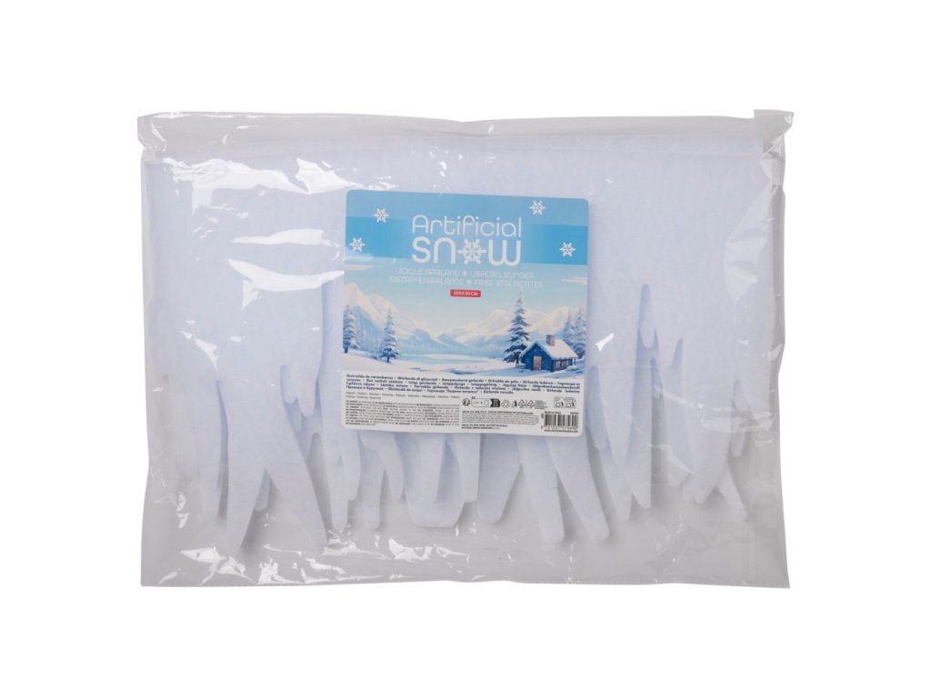 Umělý sníh s rampouchy, nehořlavý materiál.
