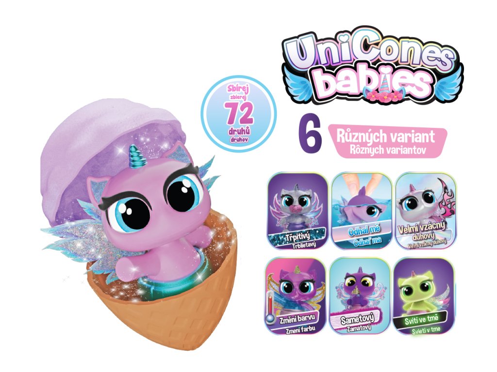 TV položka V kornoutu je malý jednorožec, který buď fosforeskuje nebo je třpytivý nebo je vzácný…. 72 druhů jednorožců. Posbírej je všechny.Doplňkové parametry