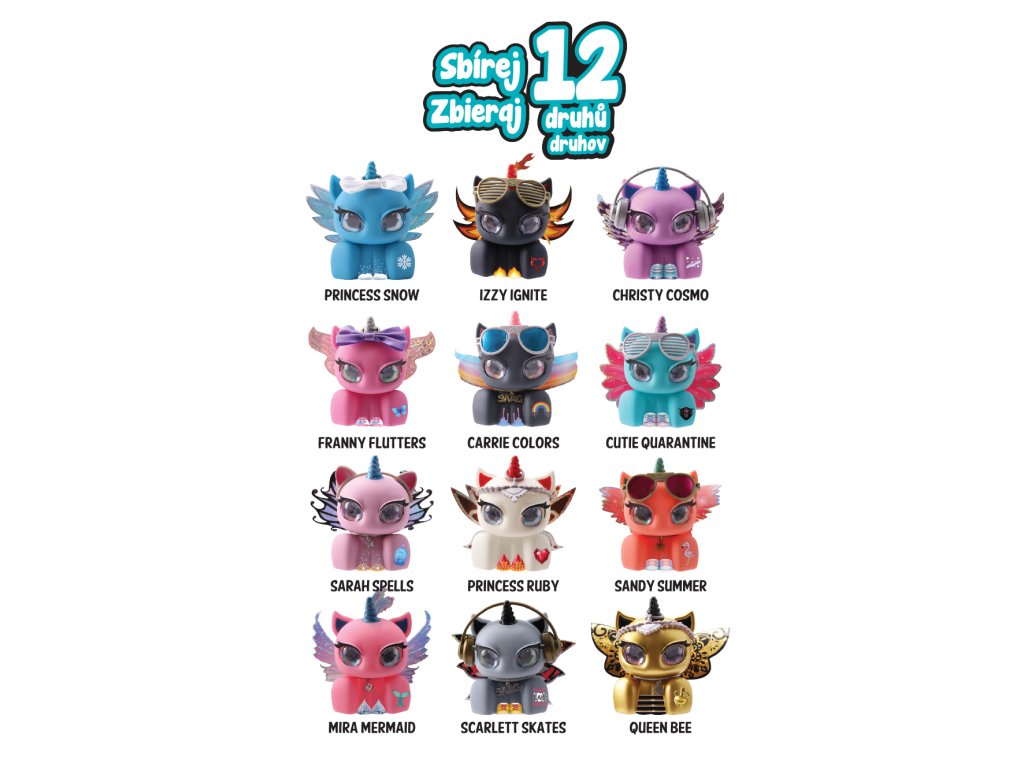 TV položkaPosbírej je všechny. V tomto kornoutu najdeš spoustu překvapení. Kortout se skládá ze 4 částí v nichž je ukryt jednorožec a úžasné doplňky, které si můžete vyměňovat. Samozřejmě nemůže chybět ani sliz.Doplňkové parametry
