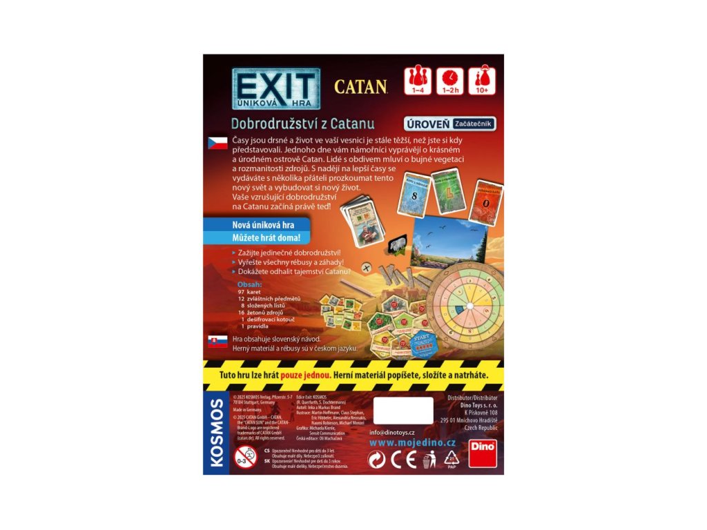 Napínavá úniková hra EXIT. Život je stále těžší, ale od námořníka se dozvíte o úrodném a krásném ostrově Katan. Vydáte se tedy se svými přáteli hledat lepší život. Jaká dobrodružství vás tam čekají? Věk: 10+Doplňkové parametry