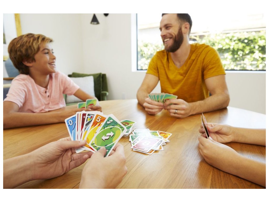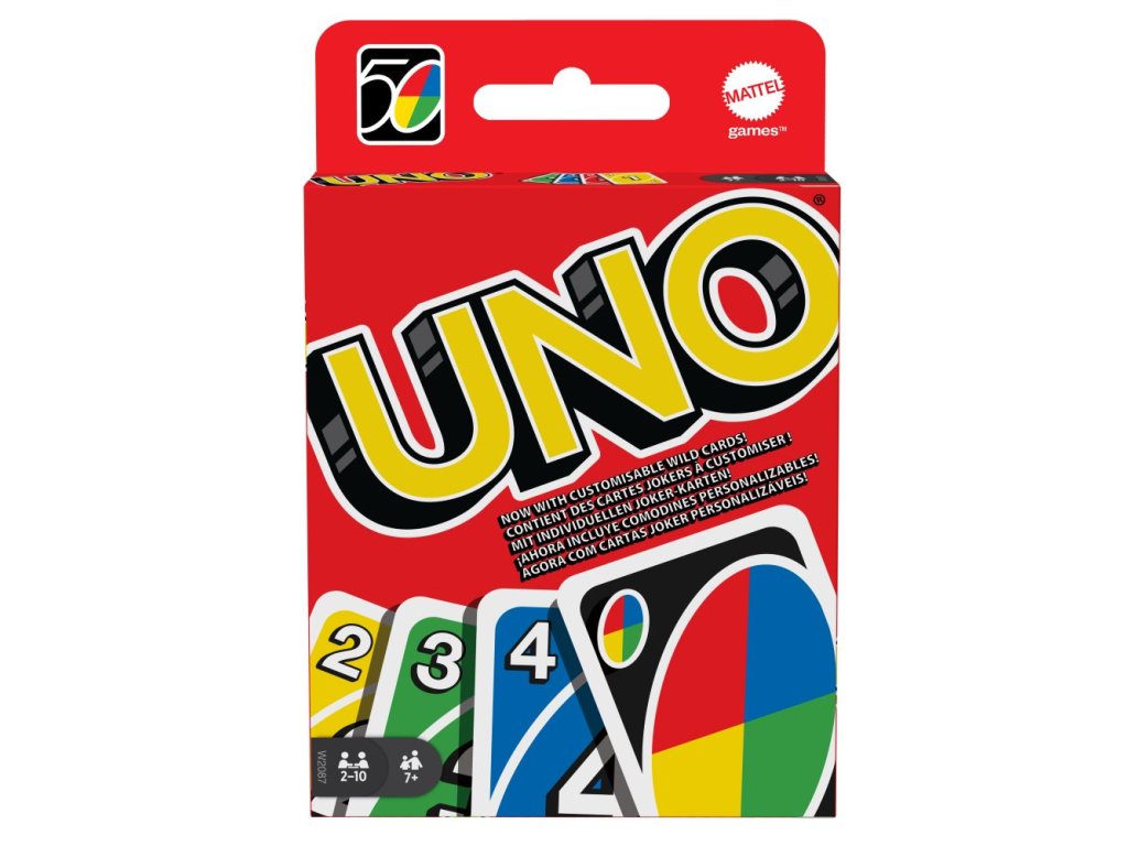 Hra UNO™ karty je klasická jednoduchá karetní hra s přiřazováním karet stejných barev a čísel, od které se nebudeš moci odtrhnout! Nyní přichází s novinkou pro ještě větší zábavu – v balíčku najdeš 3 akční přepisovatelné divoké karty, díky kterým můžeš vytvářet svá vlastní pravidla! Ve hře jsou i další speciální karty pro ještě lepší zábavu! V balíčku najdeš celkem 19 karet od každé ze čtyř barev (červená, zelená, modrá a žlutá) a speciální karty: 8x Vezmi si dvě karty, 4x Změna směru (v každé barvě), 4x Přeskoč karty (v každé barvě) a společně s nimi také 4x Divoká karta, 4x Vezmi si 4 karty, 1x Vyměň si karty a 3x karty Přepiš to. Nezapomeň zakřičet „UNO“, když už máš v ruce jenom jednu kartu. Rozjeď srandu s UNO™! Hra obsahuje 112 karet.Doplňkové parametry