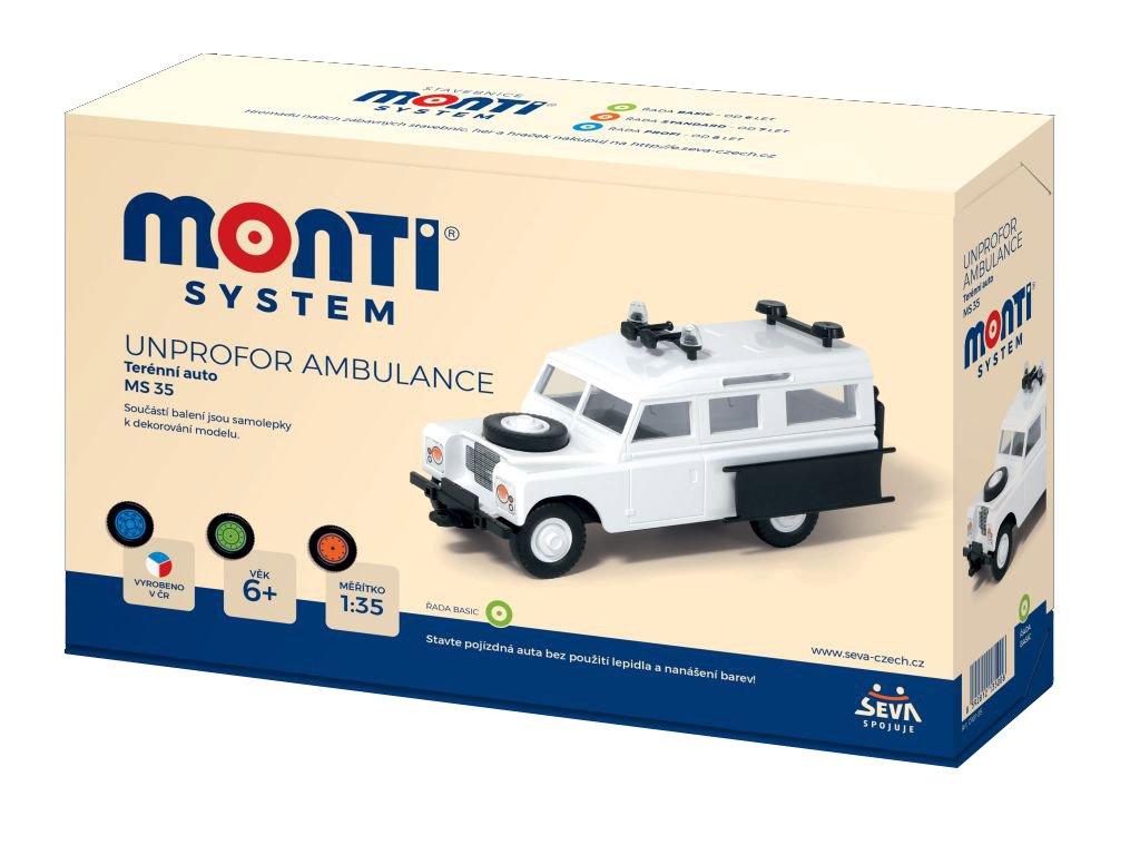 Postavte si model MS 35 - Unprofor Ambulance bez použití lepidla a nanášení barev. Vhodné od 6 let.Doplňkové parametry