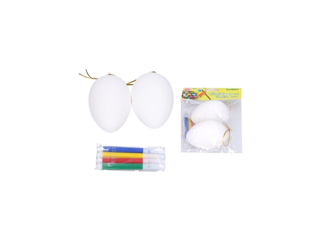 Objevte radost z kreativní tvorby. Tato sada obsahuje dvě vejce o rozměrech 5x8 cm, ideální pro malé umělce od 3 let. Kromě vajec dostanete také čtyři fixy, které dětem umožní vyjádřit svou představivost a rozvíjet umělecké dovednosti. Hračka podporuje kreativitu a jemnou motoriku, je vyrobena z kvalitního materiálu. Stačí se jen užít kreativní zábavě a přetvořit tato vajíčka podle své vlastní představivosti.Doplňkové parametry