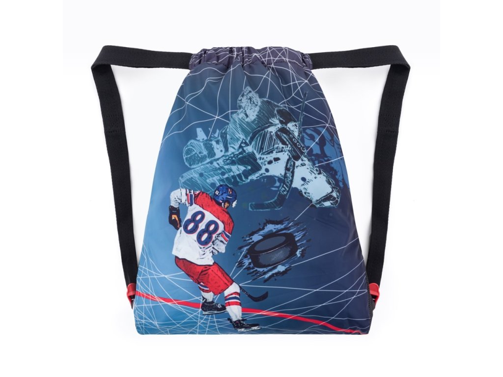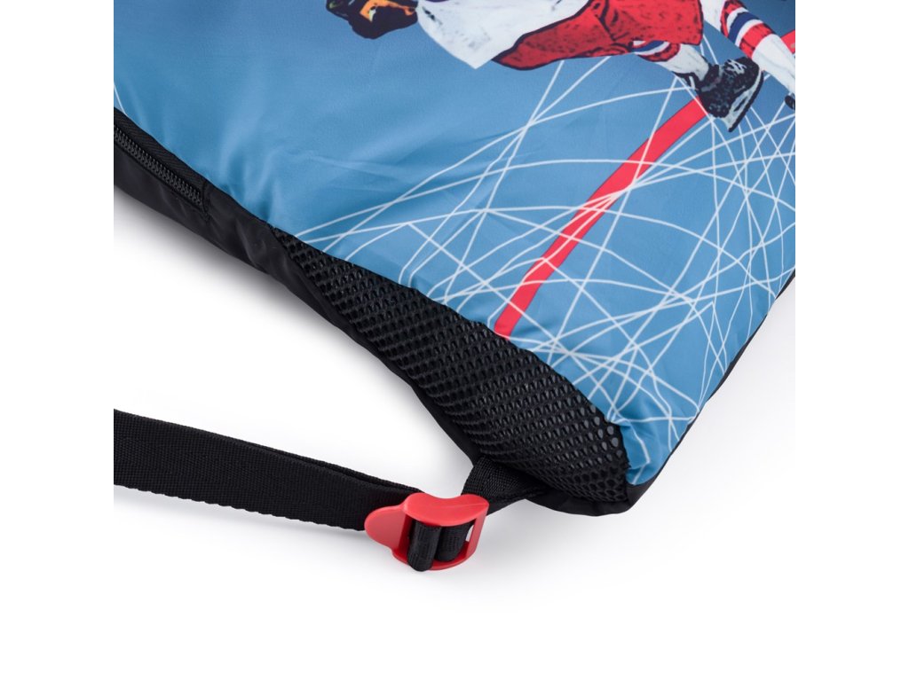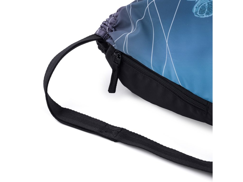 Jednokomorová kapsa na záda s nastavitelnými a širokými popruhy a reflexními prvky, do které se vejde obuv nebo sportovní oblečení.
