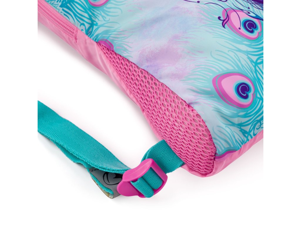 Jednokomorová kapsa na záda s nastavitelnými a širokými popruhy a reflexními prvky, do které se vejde obuv nebo sportovní oblečení.