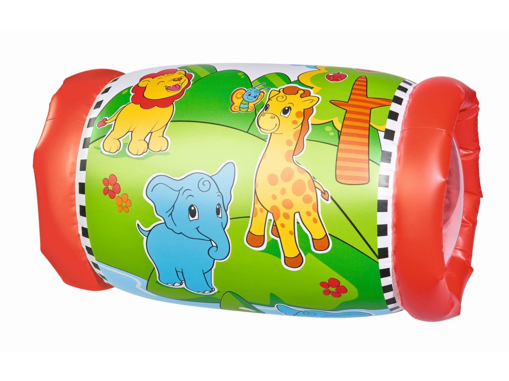 Nafukovací válec s potiskem zvířátek, ze stran průhledný, uvnitř 2 chrastící kuličky. Rozměry cca 44 x 25 cm.Doplňkové parametry