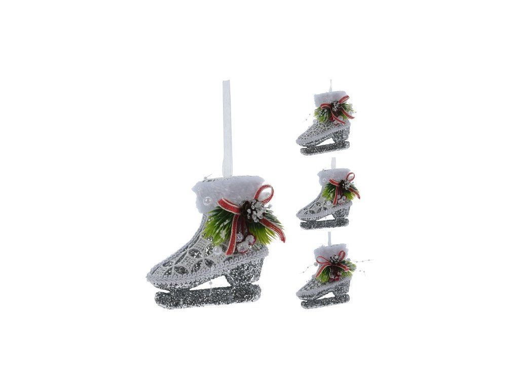 Vánoční brusle 10 cm krajková se stuhou, stříbrné třpytky, mix/1ks