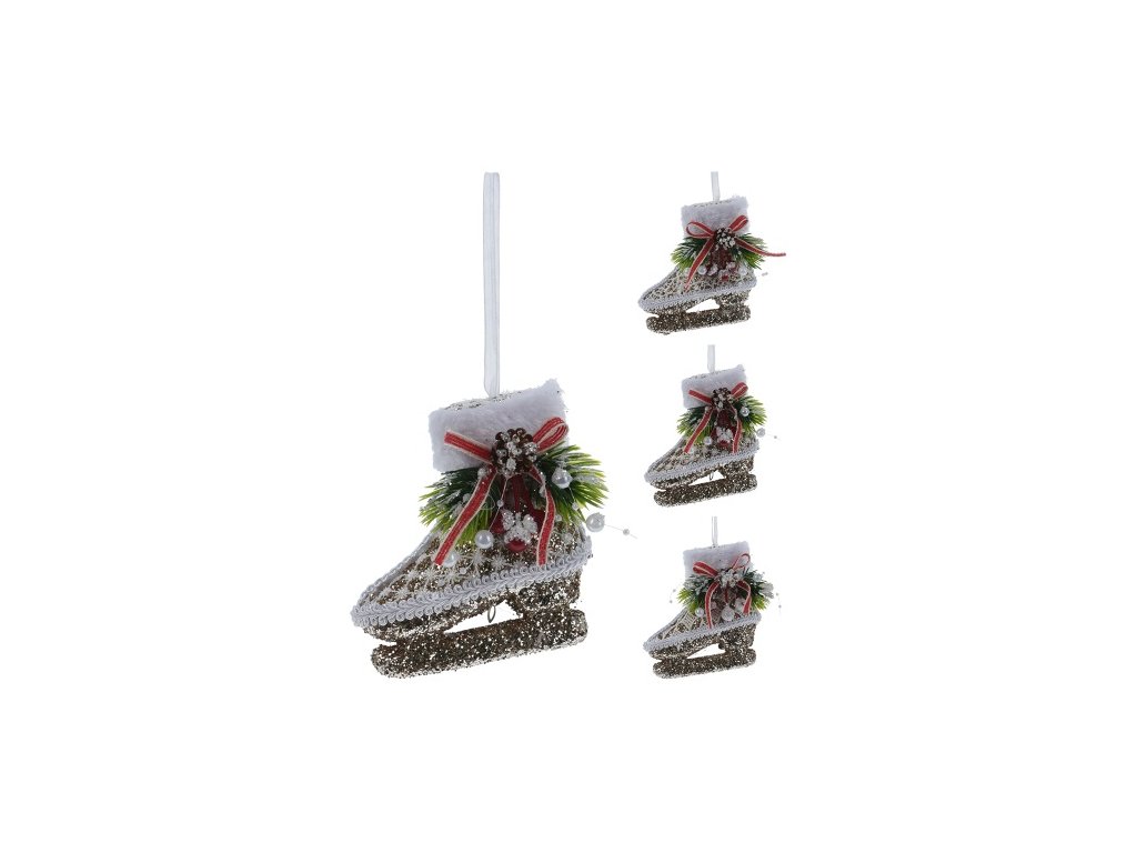 Krajková, pěkně naaranžovaná vánoční brusle s bílou stuhou pro zavěšení ve 3 designech se zlatými třpytkami.Doplňkové parametry