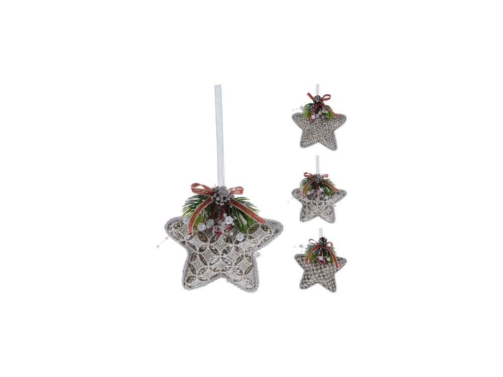 Krajková, pěkně naaranžovaná vánoční hvězda s bílou stuhou pro zavěšení ve 3 designech se zlatými třpytkami.Doplňkové parametry