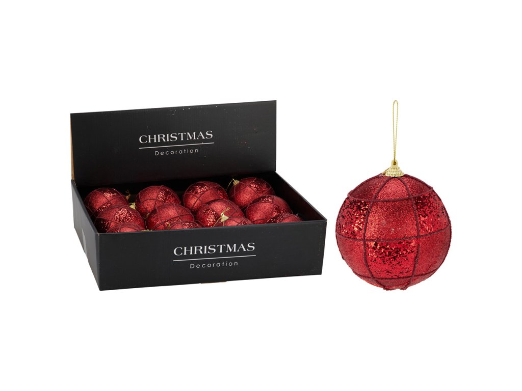 Vánoční koule 100 mm červená, třpytivá (cena /1 ks)