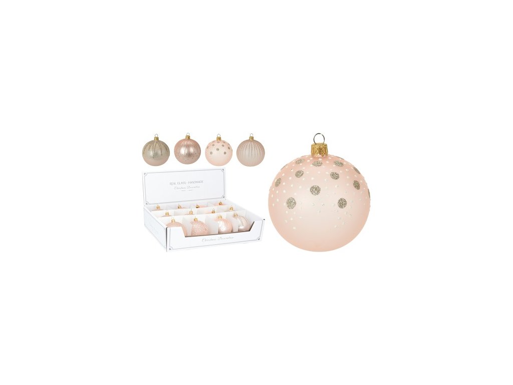 Ústy foukaná skleněná vánoční koule v růžových odstínech se zlatými třpytkami / 4 designyDoplňkové parametry