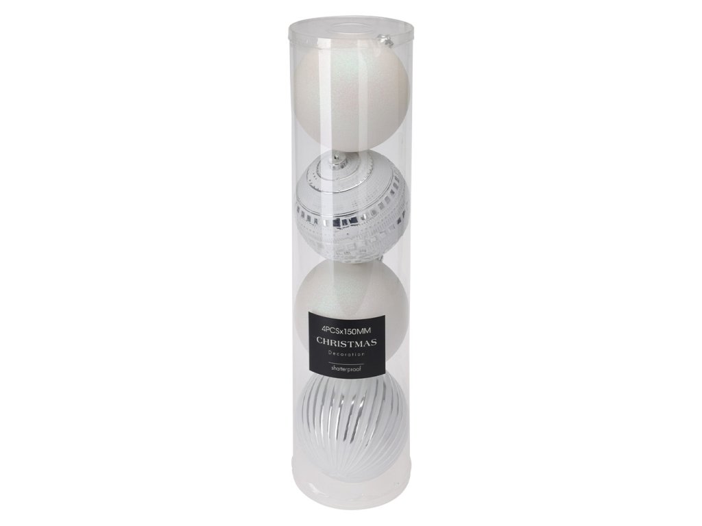 Vánoční koule 150 mm, bílá směs (sada 4 ks)