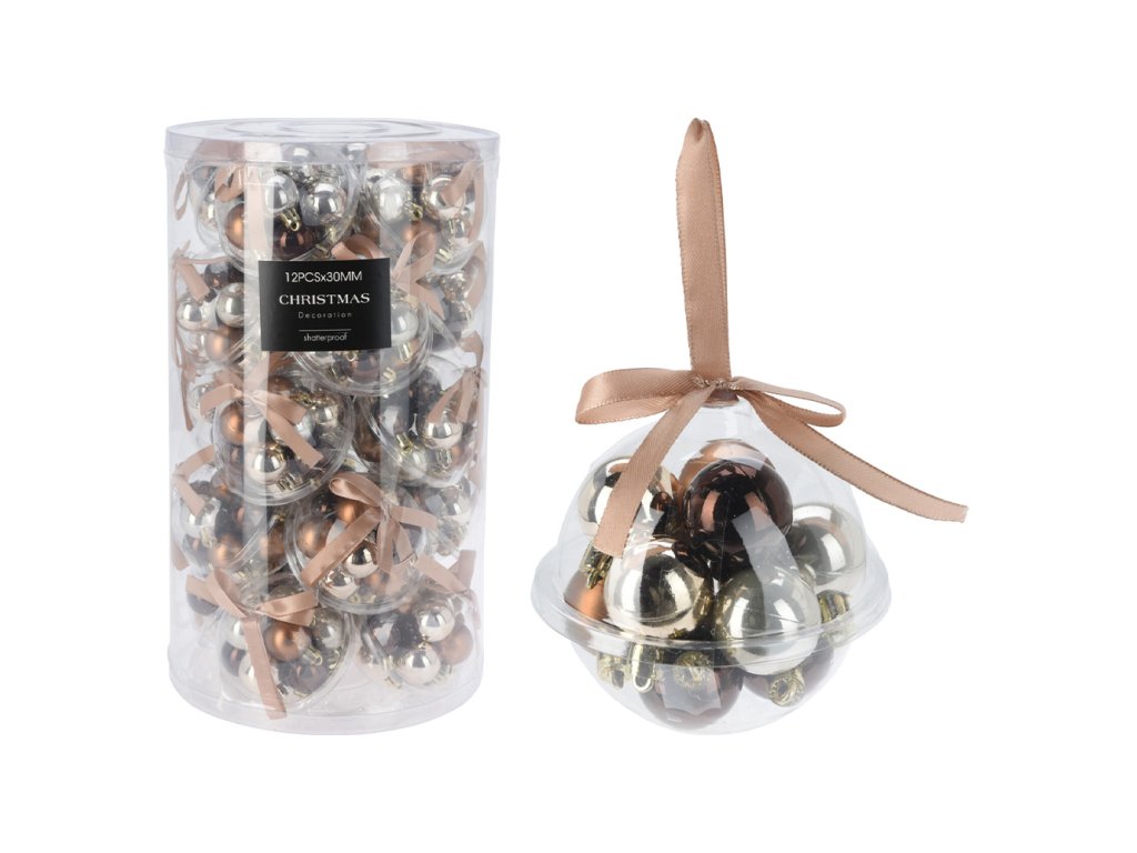 Kolekce vánočních ozdob odolných vůči rozbití - baleno v plastové kouli s mašlí.