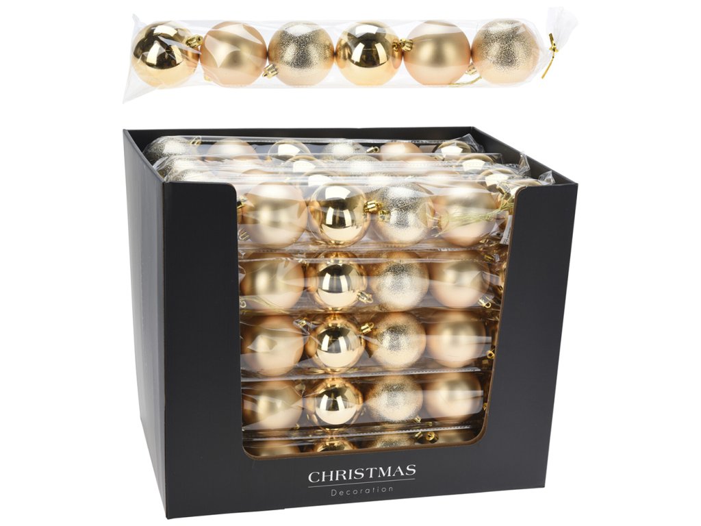 Vánoční koule 70 mm ve zlaté barvě (mix) - sada 6 kusů