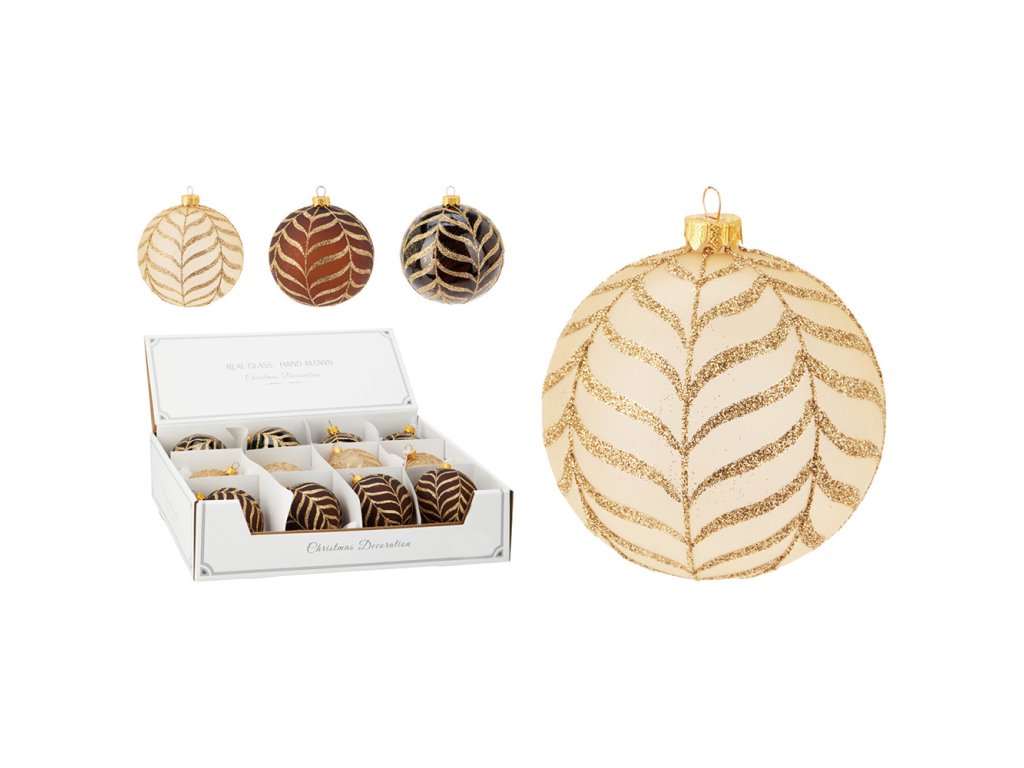 Vánoční koule zlatá / tmavě hnědá / světle hnědá, dekorovaná třpytivým vzorem ve zlaté barvě (3 barvy).
