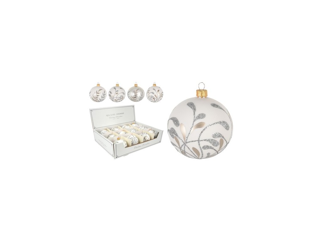 Vánoční koule 80 mm bílá dekorovaná mix /1ks