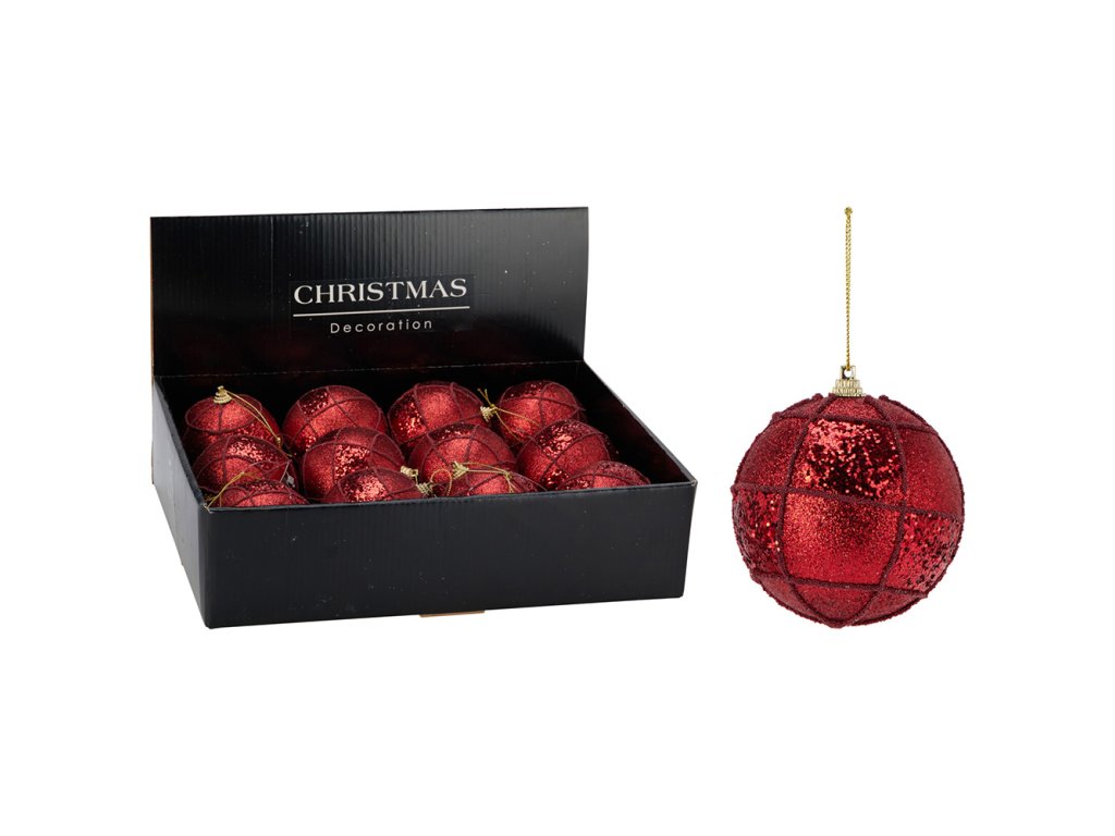 Vánoční koule 80 mm červená, třpytivá (cena /1 ks)