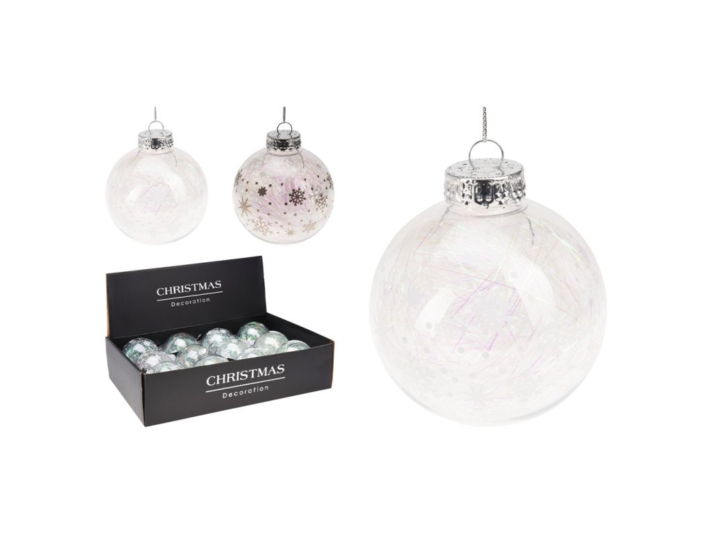Vánoční koule 80 mm s ozdobnou fólií uvnitř (2 vzory) cena za 1 ks