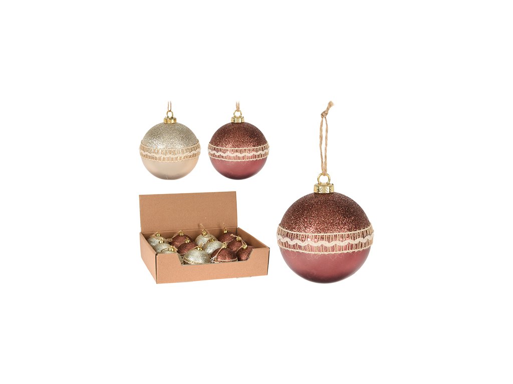 Skleněná koule zdobená jemnými grlitry - mix barev. Dekor vánoční koule je velmi elegantní a hodí se na každý vánoční stromeček. Průměr vánoční koule je 80 mm.Doplňkové parametry