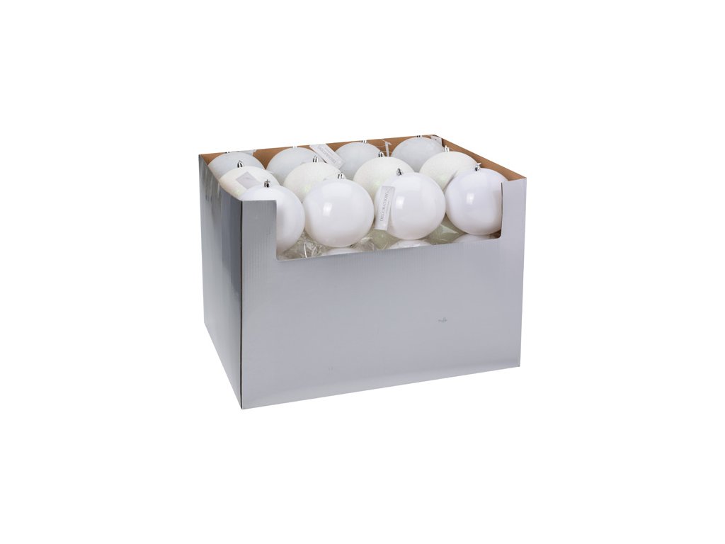 Vánoční závěsná ozdoba, vyhotovena z pevného PP materiálu. V bílé barvě / mix - matné, lesklé s třpytkami. Průměr ozdoby 120mm. Praktické, nerozbitné, přesto s luxusním vzhledem.Doplňkové parametry
