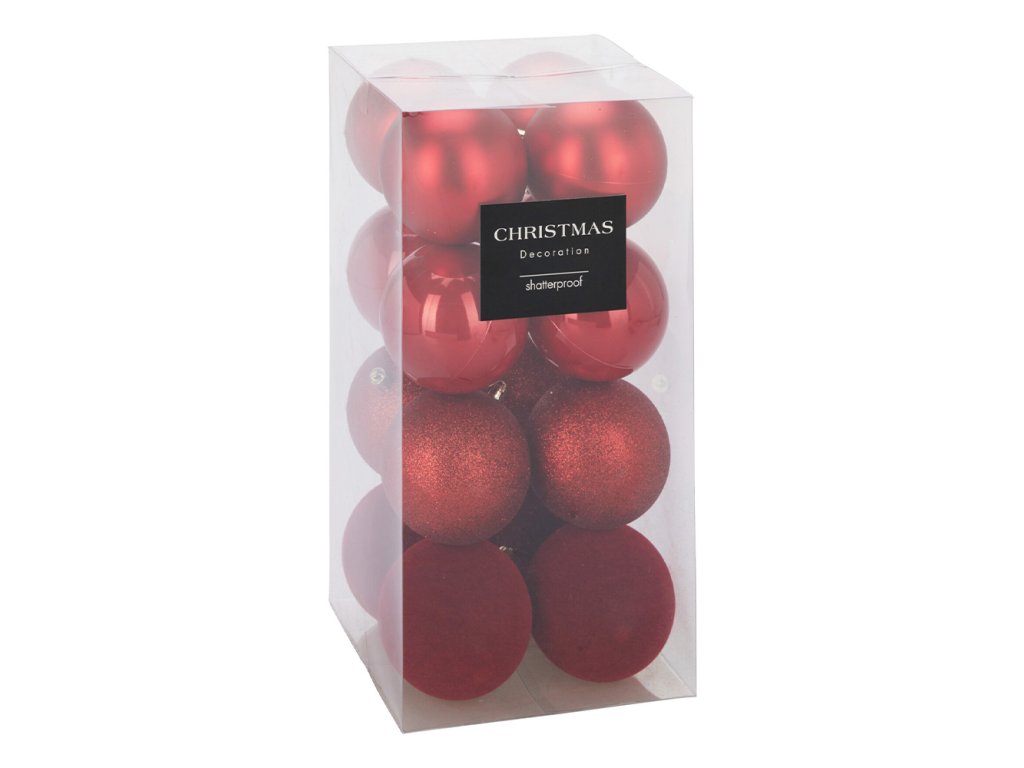 Vánoční koule - PP červená 80 mm, sada 16 ks