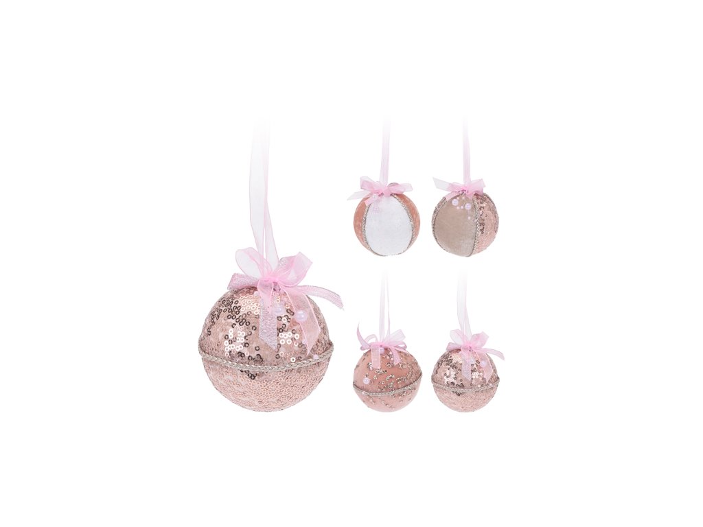 Vánoční závěsná ozdoba, vyhotovené z pěnového PS materiálu. V růžové barvě, dozdobena korálky a třpytkami. Průměr ozdoby 80 mm. Praktické, nerozbitné, přesto s luxusním vzhledem. Mix design.Doplňkové parametry