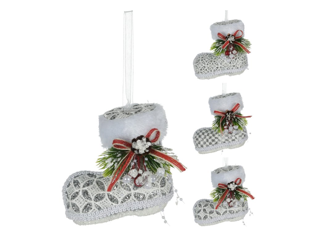 Krajková, pěkně naaranžovaná kozačka s bílou stuhou pro zavěšení ve 3 designech se stříbrnými třpytkami.Doplňkové parametry