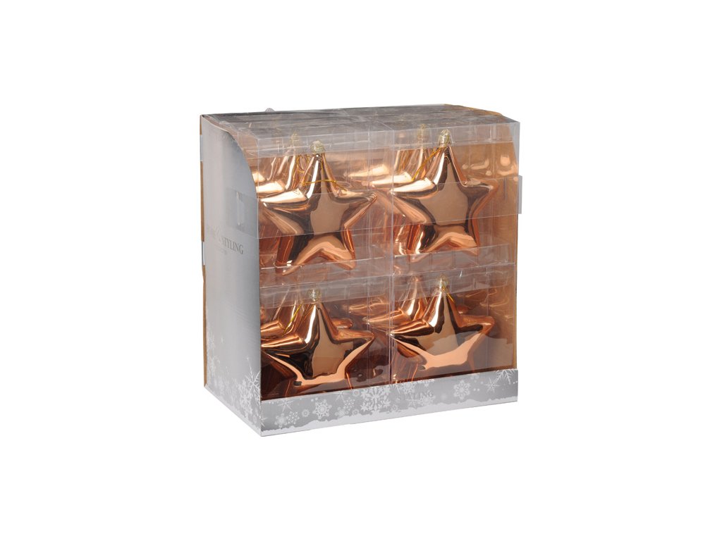 Vánoční ozdoba závěsná ve tvaru hvězdy. V měděné lesklé barvě. Velikost ozdoby 150mm. Klasická ozdoba na Váš vánoční stromeček.Doplňkové parametry