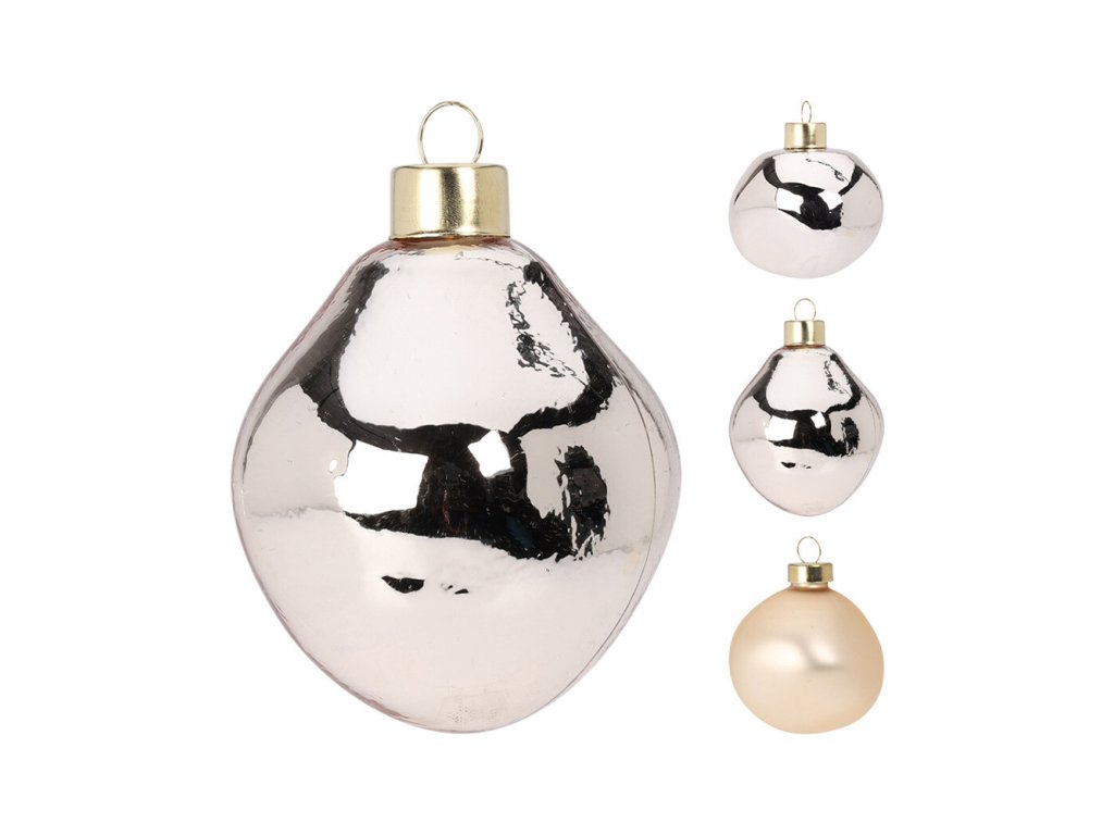 Vánoční koule v organickém tvaru, sada obsahuje 2x šampaň zlatá lesklá a 1x šampaň zlatá matná.