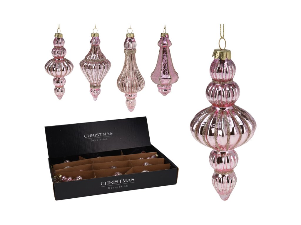 Vánoční ozdoba skleněná antik 16 cm (4 varianty - růžová) cena je za 1 ks
