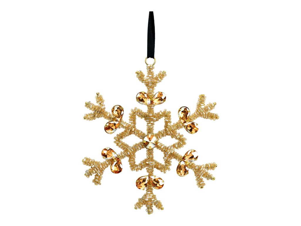 Vánoční ozdoba zlatá sněhová vločka, průměr 13 cm (kov, sklo)
