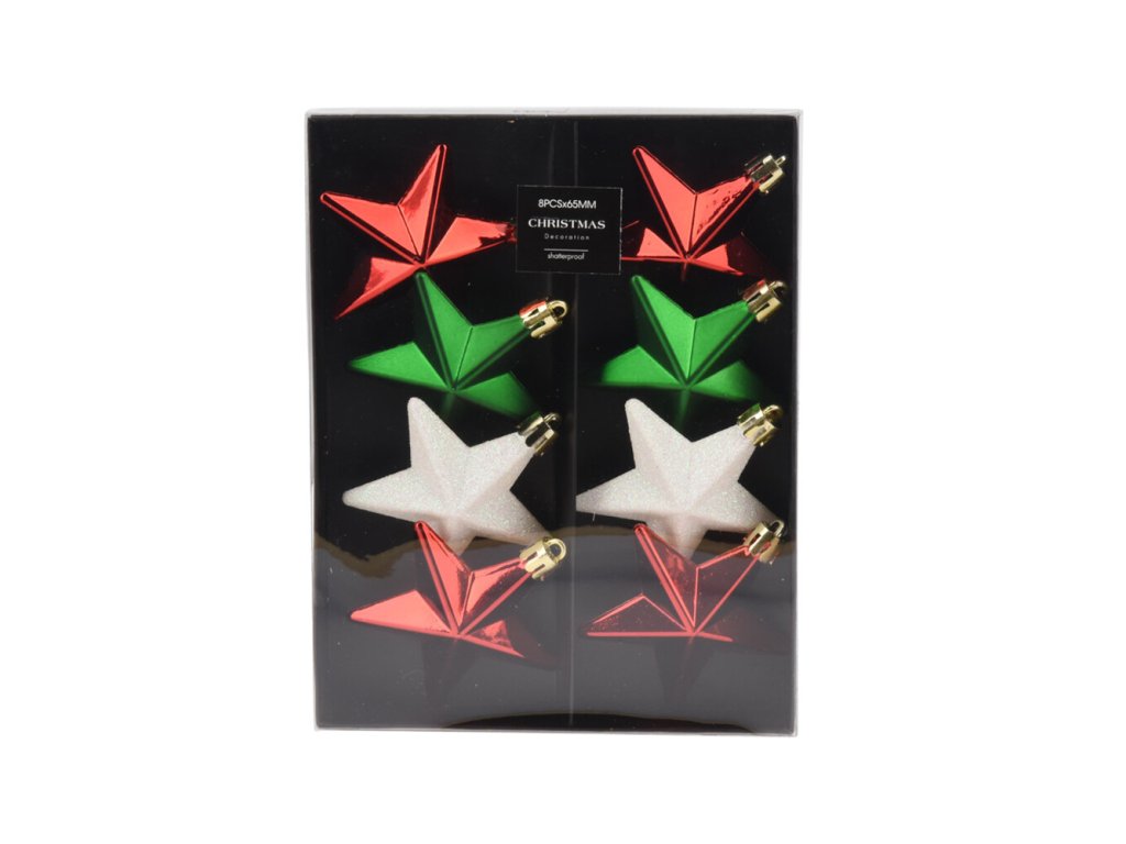 Vánoční ozdoby - hvězdy 65 mm, mix barev, 8 ks