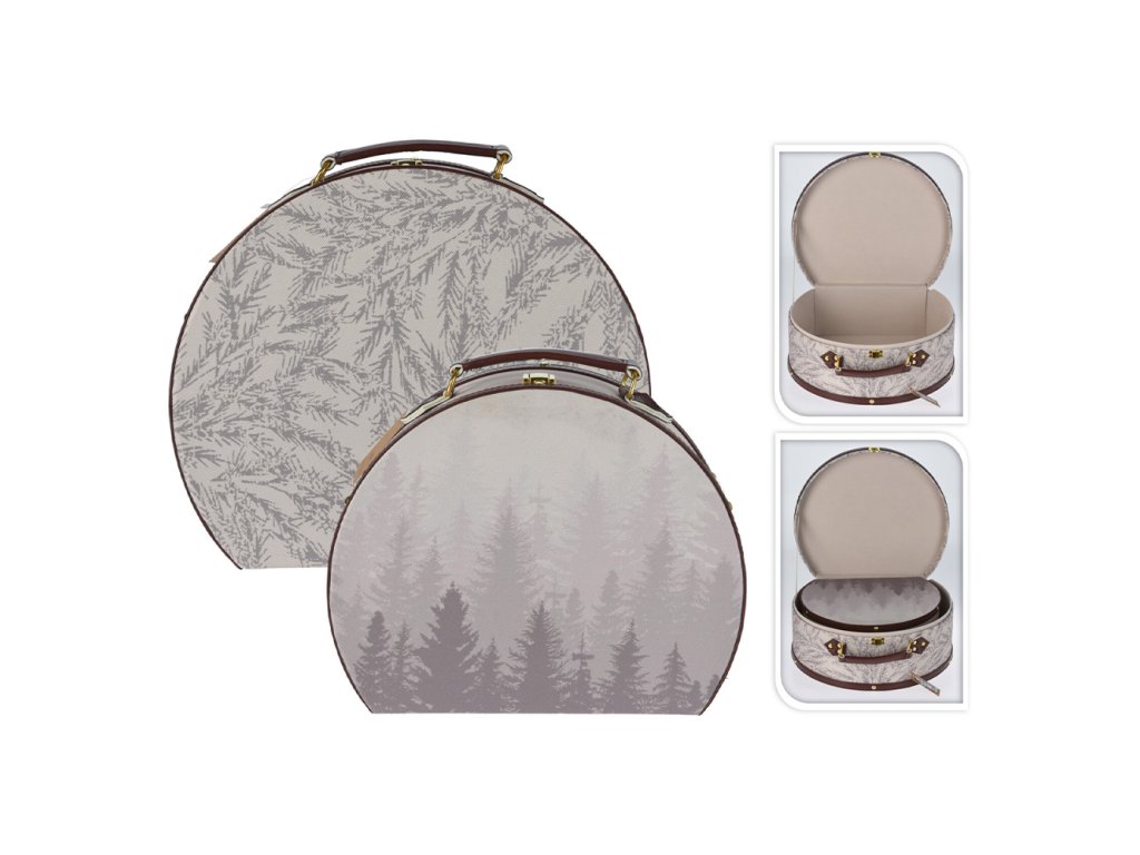 Vánoční sada kufříků, béžová barva, dekor stromy