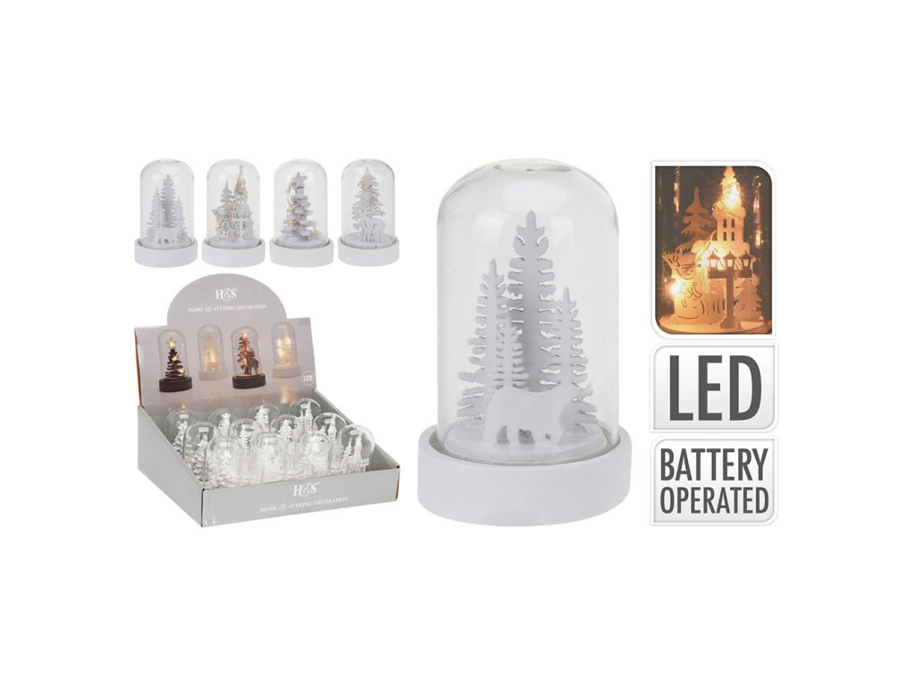 Vánoční scéna s LED osvětlením ve skelné kopuli - bílá (mix /cena 1ks)